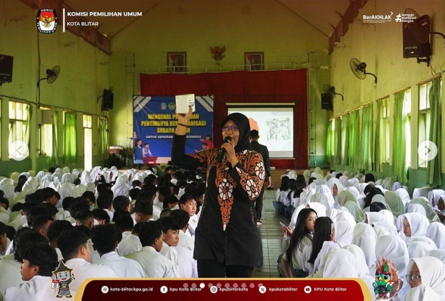 “Dalam kesempatan tersebut, kami KPU Kota Blitar menhajak seluruh siswa yang hadir untuk memahami arti pemilu, dasar pelaksanaan pemilu, hak dan kewajiban sebagai pemilih, serta apa saja bentuk partisipasi dalam pemilu,”kata Hesti.