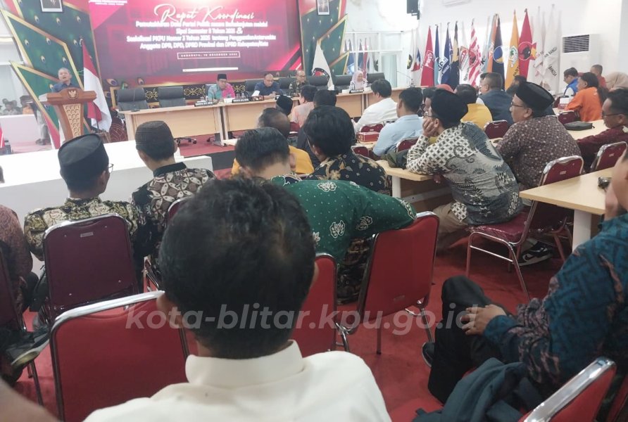 Kota Blitar, kota-blitar.kpu.go.id – KPU Kota Blitar turut hadir dalam kegiatan Rapat Koordinasi dan Sosialisasi Pemutakhiran Data Partai Politik melalui SIPOL yang diselenggarakan KPU Provinsi Jawa Timur dan dihadiri Divisi Teknis Penyelenggaraan Pemilu, Sekretaris, serta Kasubbag Teknis dan Hukum dari 38 KPU Kabupaten/Kota se-Jawa Timur, bersama para pemangku kepentingan eksternal, Kamis (18/12/2025).