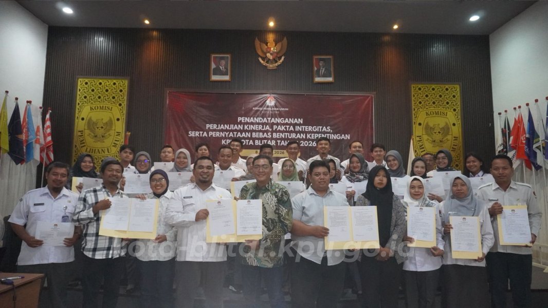 KPU Kota Blitar Lakukan Penandatanganan Perjanjian Kinerja, Pakta Integritas dan Pernyataan Bebas Benturan Kepentingan Tahun 2026