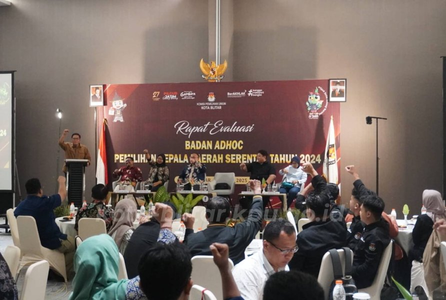 Rapat evaluasi pembentukan badan ad hoc ini menghadirkan peserta dari Badan Ad Hoc PPK PPS Pilkada Serentak Tahun 2024, stakeholder terkait, serta Camat se-Kota Blitar. Rapat evaluasi diharapkan mampu menjadikan tolak ukur kesukseskan penyelenggaran Pilkada di masa yang akan datang. (Hms/kot).