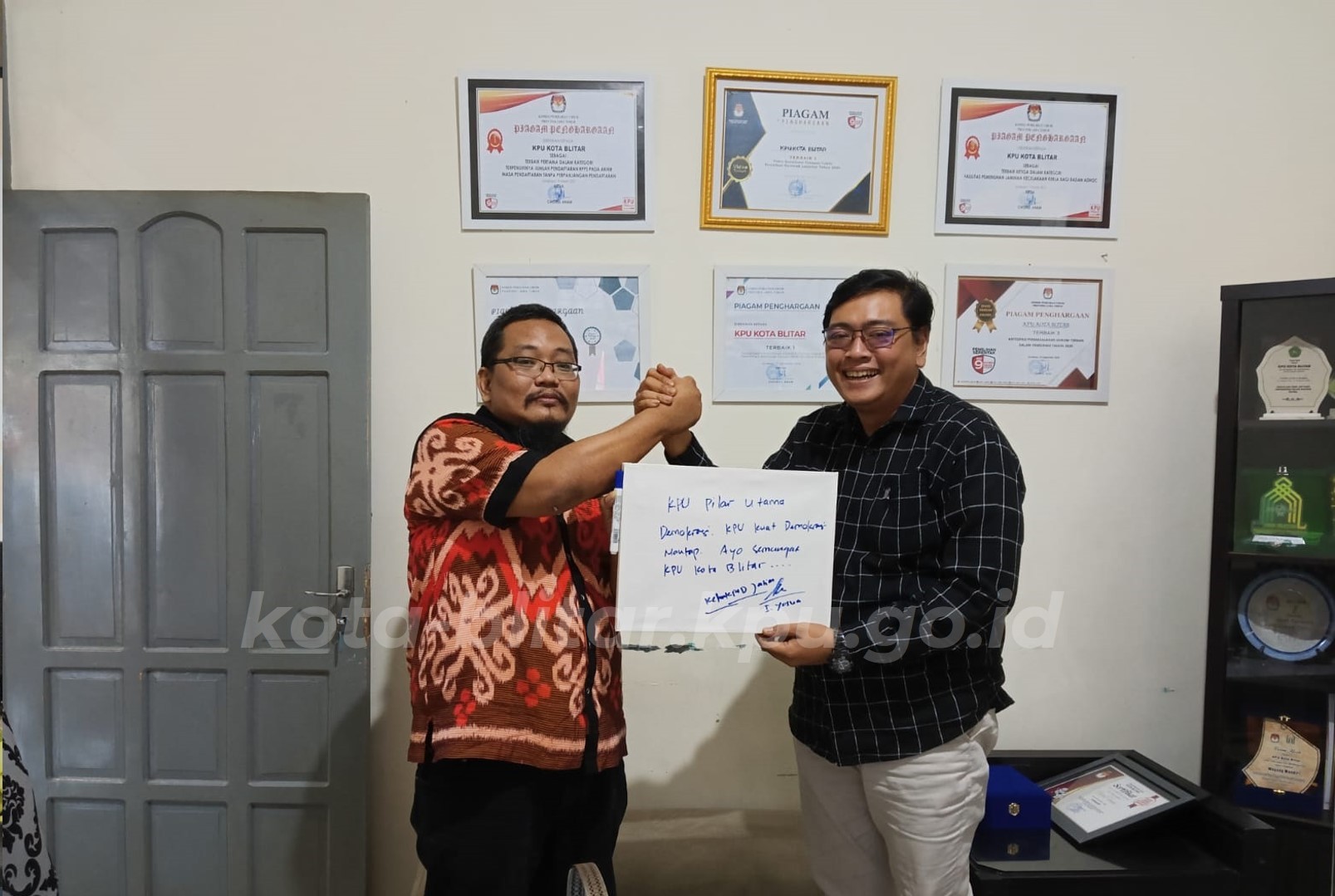 Kota Blitar, kota-blitar.kpu.go.id – Komisi Pemilihan Umum Kota Blitar menerima kunjungan dari Komisi Penyiaran Indonesia Daerah (KPID) Jawa Timur, Selasa (16/05). Rombongan KPID Jawa Timur diterima langsung oleh jajaran Komisioner KPU Kota Blitar di ruang kerja Ketua KPU Kota Blitar.