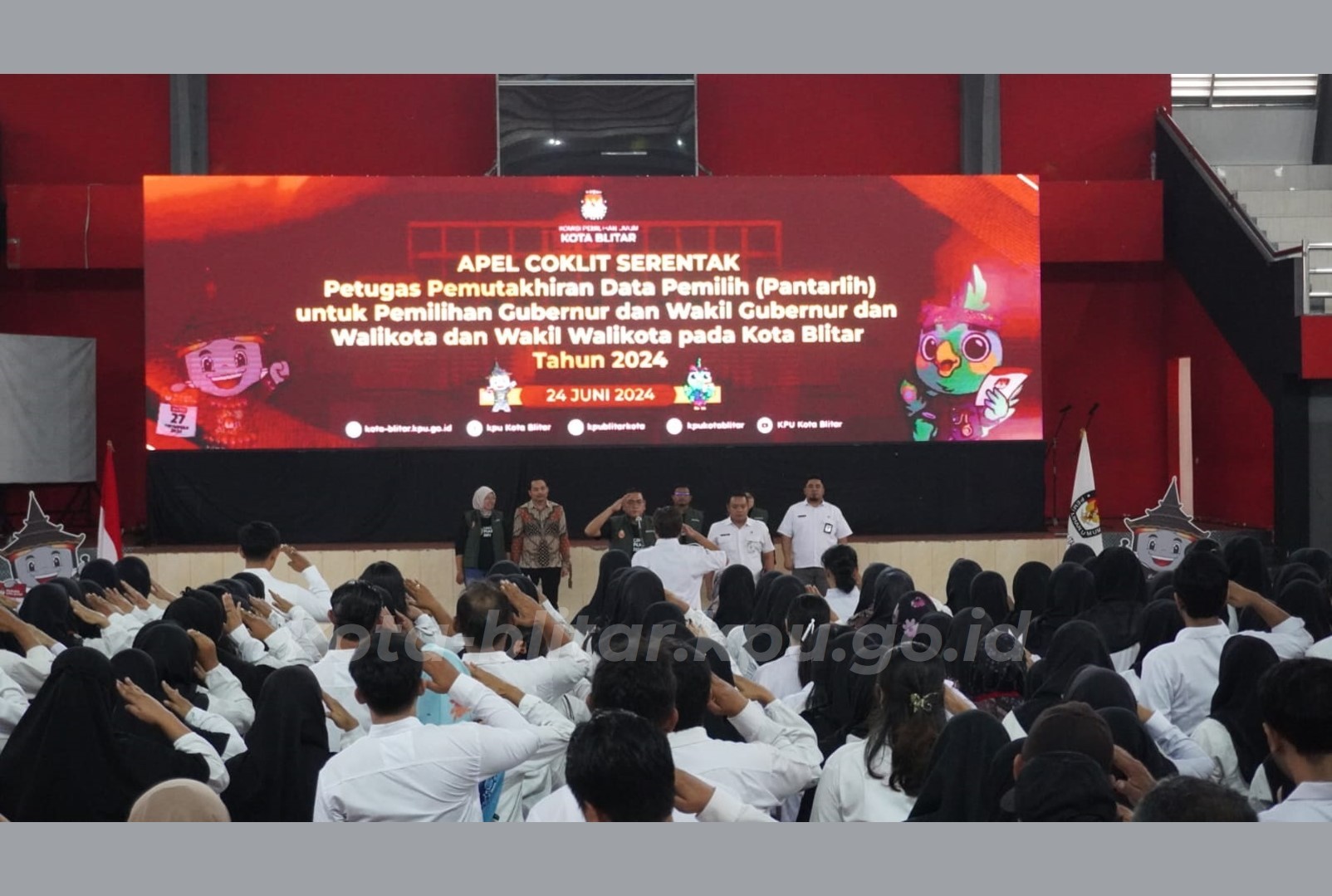 Kota Blitar, kota-blitar.kpu.go.id – Komisi Pemilihan Umum Kota Blitar menggelar Apel Gerakan Coklit (Pencocokan dan Penelitian) Serentak sebagai bagian dari persiapan Pilkada Serentak Tahun 2024. Kegiatan ini dilaksanakan pada hari Senin, (24/6) di GOR Soekarno Hatta dan diikuti oleh PPK, PPS, dan Pantarlih.