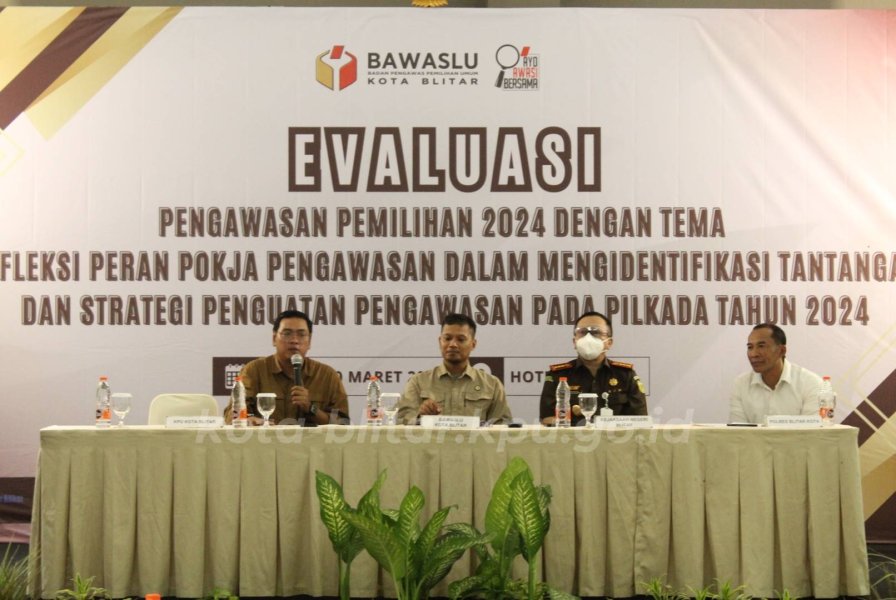 Kota Blitar, kota-blitar.kpu.go.id – Ketua KPU Kota Blitar Rangga Bisma Aditya hadir sebagai narasumber dalam kegiatan Evaluasi Pengawasan Pemilihan 2024 yang diselenggarakan oleh Bawaslu Kota Blitar, Senin (10/3). Mengambil tema "Refleksi Peran Pokja Pengawasan dalam Mengidentifikasi Tantangan dan Strategi Penguatan Pengawasan pada Pilkada Tahun 2024", kegiatan ini menjadi ajang refleksi dan diskusi mendalam mengenai berbagai aspek pengawasan dalam pemilihan kepala daerah.