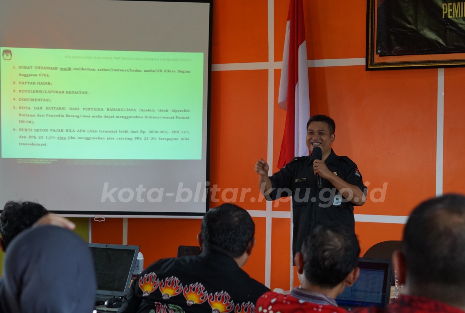 “Pada prinsipnya dana yang dibelanjakan oleh teman-teman ad hoc ini sesuai dengan ketentuan. Jangan sampai ada kekurangan pada pertanggungjawabannya, apalagi dikemudian hari mengakibatkan kerugian negara. Tentunya teman-teman diwajibkan untuk mengembalikannya ke kas negara,”terang Ketua KPU Kota Blitar saat memberikan pengarahan di hari pertama bimbingan teknis dimulai.