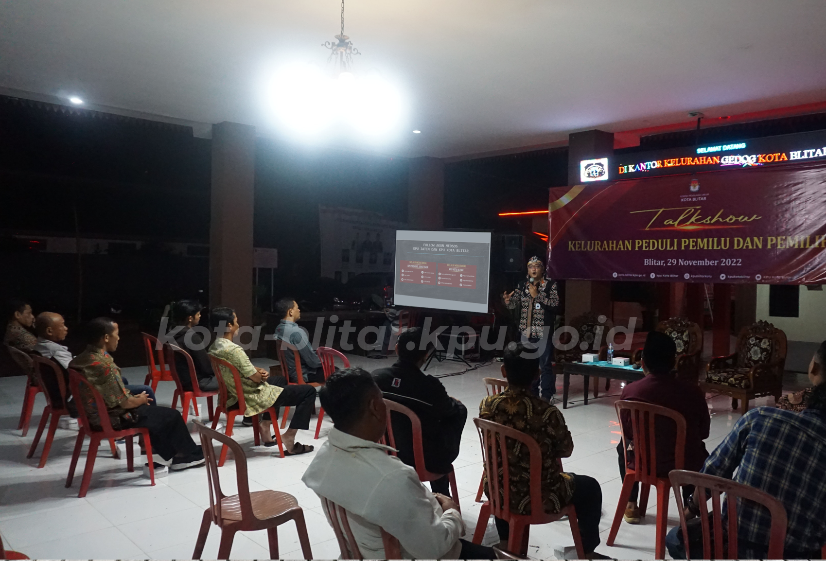 Blitar, kota-blitar.kpu.go.id – KPU Kota Blitar dalam program peningkatan partisipasi masyarakat menggelar Kelurahan Peduli Pemilu dan Pemilihan, Selasa (29/11). Dilaksanakan di Balai Kelurahan Gedog, kegiatan diikuti oleh 20 masyarakat Gedog.