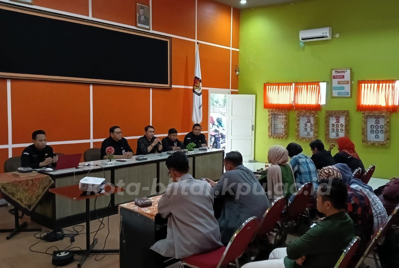 Kota Blitar, kota-blitar.kpu.go.id – Usai menerima berkas 712 pendaftar calon Petugas Pemutakhiran Data Pemilih (Pantarlih) untuk Pemilihan Umum Tahun 2024 di Kota Blitar, KPU Kota Blitar melakukan rapat koordinasi bersama PPK dan Ketua PPS se-Kota Blitar, Rabu (1/02). Rapat Koordiasi yang dilaksanakan di Aula KPU Kota Blitar ini bertujuan untuk melakukan konsolidasi dan penyamaan presepsi terkait pelaksanaan tahapan penelitian administrasi, pengumuman dan penetapan hasil seleksi Pantarlih Pemilu tahun 2024.