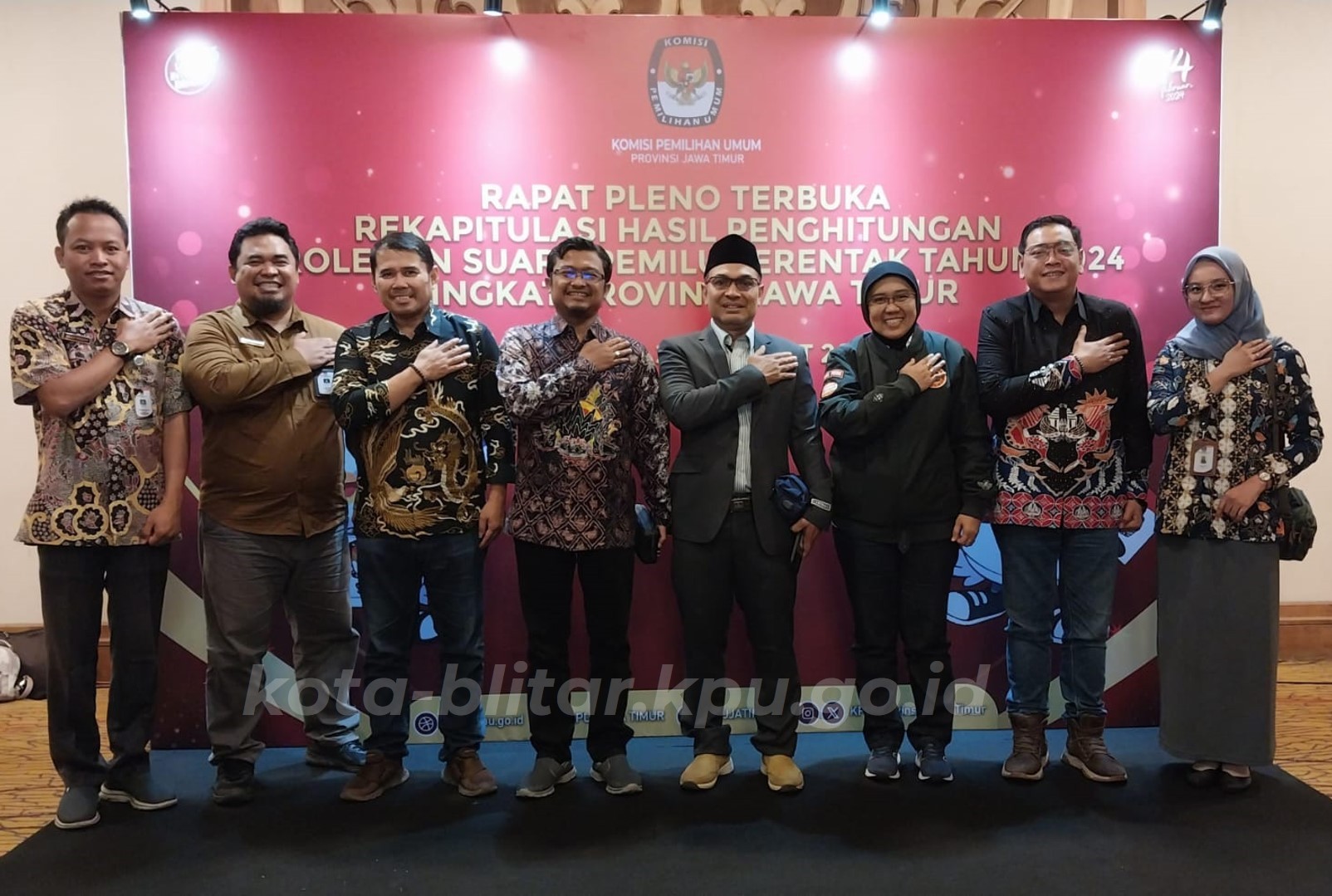 Surabaya, kota-blitar.kpu.go.id – Setelah tuntas melaksanakan rapat pleno terbuka rekapitulasi dan penetapan rekapitulasi hasil perolehan suara dalam Pemilu tahun 2024 di Kota Blitar, KPU Kota Blitar langsung tilik ke KPU Provinsi Jawa Timur untuk mengikuti Rapat Pleno Terbuka Hasil Rekapitulasi Perolehan Suara Serentak Tahun 2024 tingkat Provinsi Jawa Timur, Minggu (3/03).