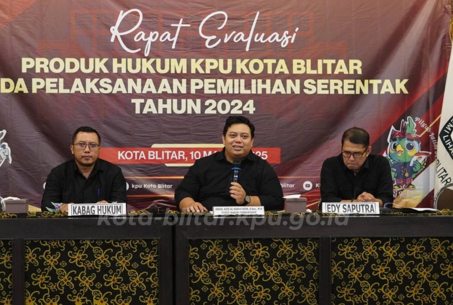 Aziz berharap dalam giat evaluasi ini dapat memberikan masukan dan saran agar pembuatan produk hukum pemilihan dimasa yang akan datang akan jauh lebih baik lagi. Rapat evaluasi menghadirkan narasumber dari Kepala Bagian Hukum Sekretariat Daerah Kota Blitar dan Edy Saputra (Anggota KPU Kota Blitar periode 2019-2024). (Hms/kot).