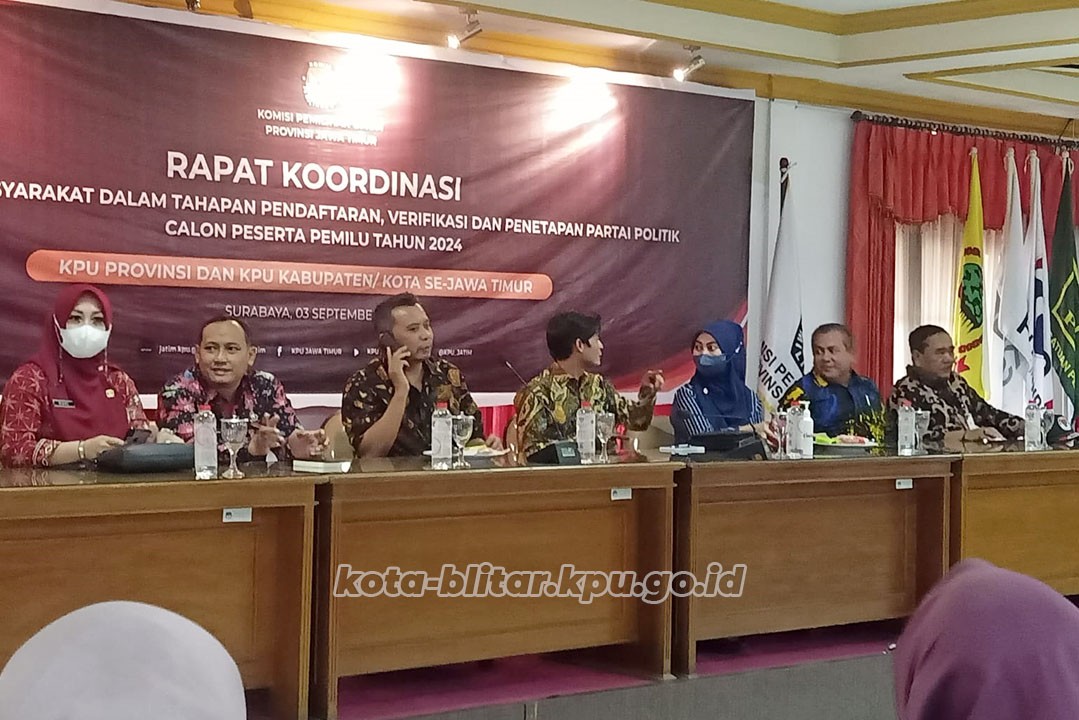 KPU Kota Blitar Ikuti Rakor Tanggapan Masyarakat dalam Tahapan Pendaftaran, Verifikasi dan Penetapan Parpol Peserta Pemilu 2024