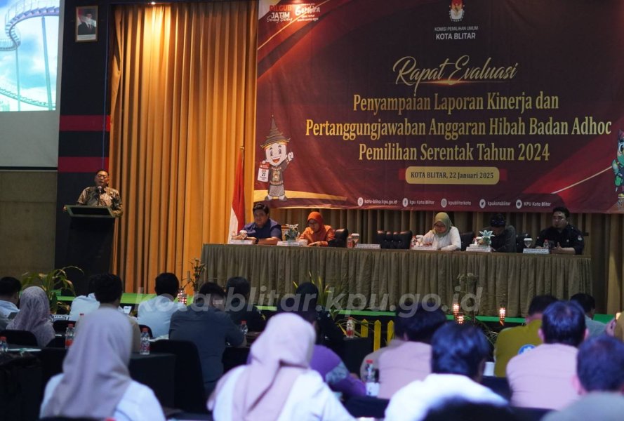 Kota Blitar, kota-blitar.kpu.go.id –Komisi Pemilihan Umum Kota Blitar menggelar rapat evaluasi penyampaian pertanggungjawaban anggaran hibah badan ad hoc Pemilihan Serentak Tahun 2024, Rabu (22/01).