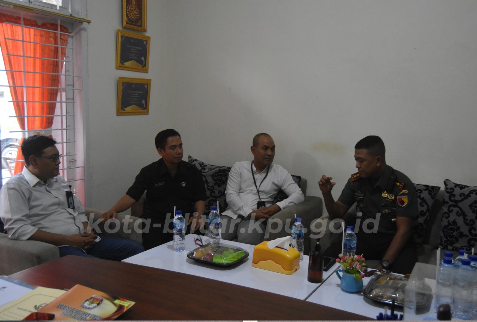Kota Blitar, kota-blitar.kpu.go.id –KPU Kota Blitar menerima kunjungan dari Komandan Kodim 0808 beserta jajaran, Senin (3/06). Kunjungan Komandan Kodim 0808 beserta jajran diterima langsung oleh Komisioner beserta Sekretaris KPU Kota Blitar di ruang kerja Ketua KPU Kota Blitar.