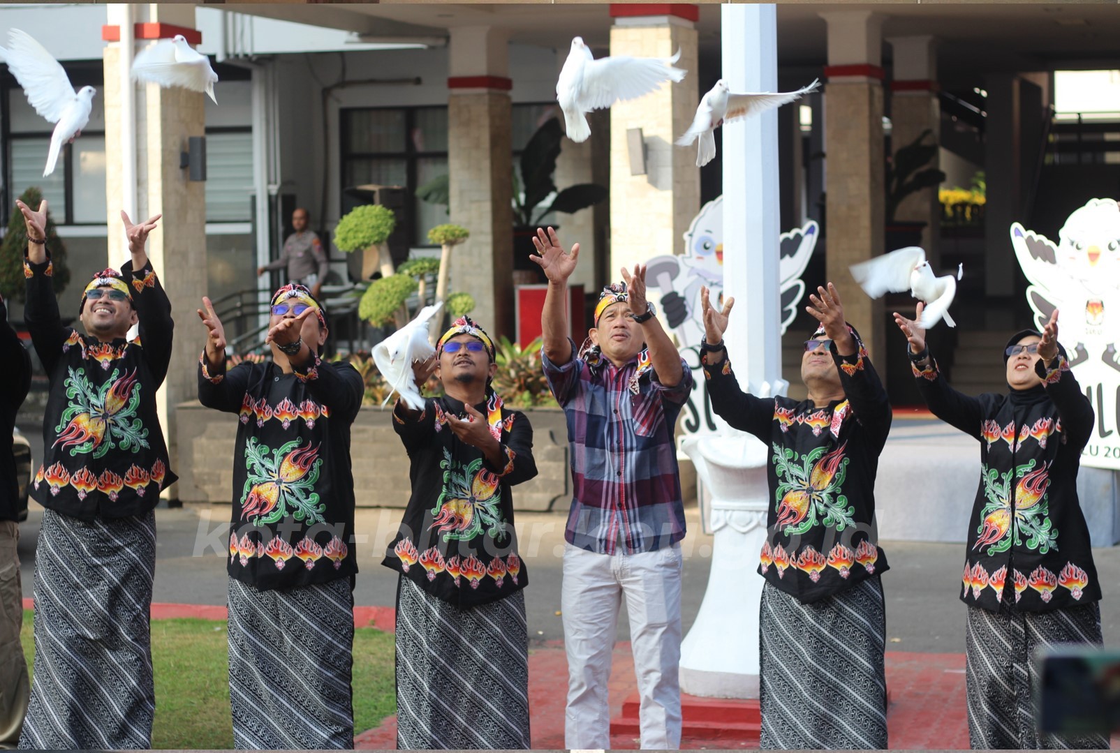 Sebelum diberangkatkan, Komisioner KPU Kota Blitar, Sekda Kota Blitar, dan PPK PPS se Kota Blitar melakukan prosesi pelepasan merpati sebagai simbol bahwa KPU Kota Blitar akan melepas dan mengantarkan 18 bendera Partai politik Kirab Pemilu Tahun 2024 ke Kabupaten Kediri.