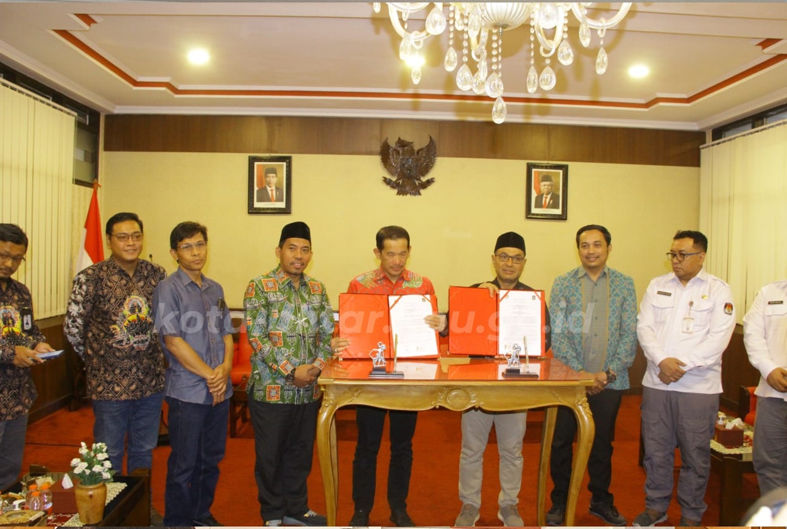 Turut hadir dalam kegiatan penandatanganan kesepakatan hibah Pilkada, Anggota KPU Jawa Timur Miftahur Rozaq dan Kabag Keuangan KPU Provinsi Jawa Timur.(Hms/kot).