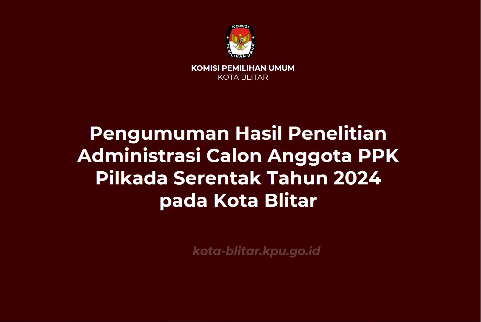 Pengumuman Hasil Penelitian Administrasi Calon Anggota PPK Pilkada Serentak Tahun 2024 pada Kota Blitar