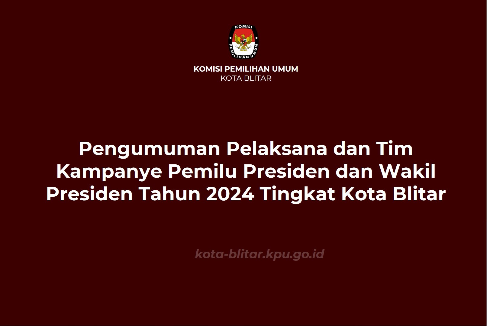 Kota Blitar, kota-blitar.kpu.go.id -Berikut disampaikan Pengumuman Pelaksana dan Tim Kampanye Pemilu Presiden dan Wakil Presiden Tahun 2024 tingkat Kota Blitar, Unduh Disini