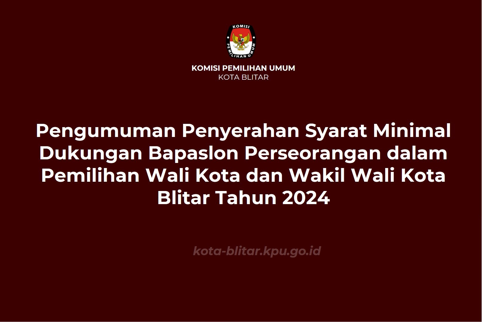 Pengumuman Penyerahan Syarat Minimal Dukungan Bapaslon Perseorangan dalam Pemilihan Wali Kota dan Wakil Wali Kota Blitar Tahun 2024