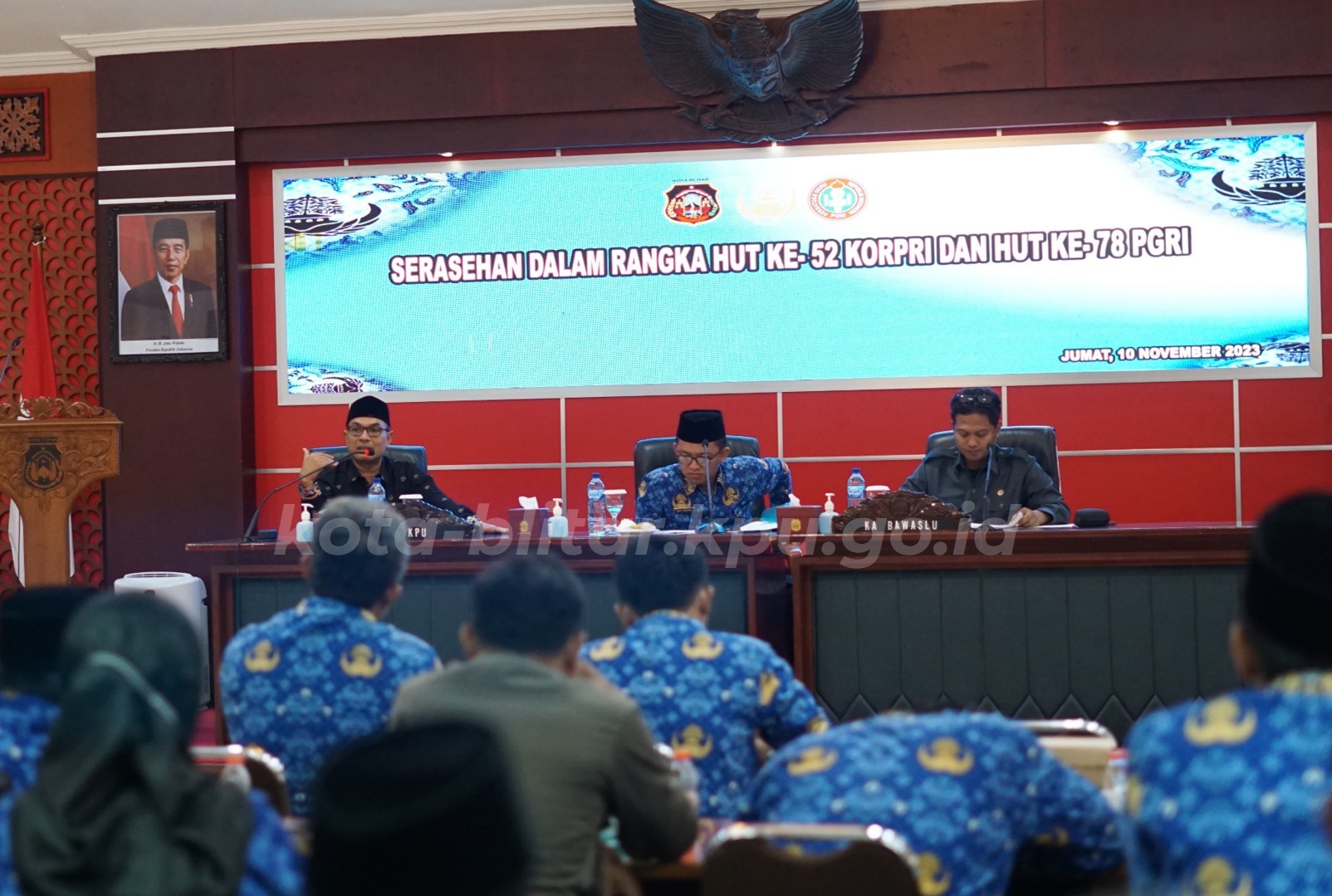 Ketua KPU Kota Blitar Choirul Umam berkesempatan untuk menjadi narasumber sarasehan dalam rangka HUT ke 52 dan HUT ke-78 PGRI yang diselenggarakan oleh Pemerintah Kota Blitar, Jum’at (10/11). Kegiatan berlangsung di ruang Sasana Praja Kantor Walikota Blitar diikuti oleh PNS, ASN, PPPK di lingkungan Pemerintah Kota Blitar.