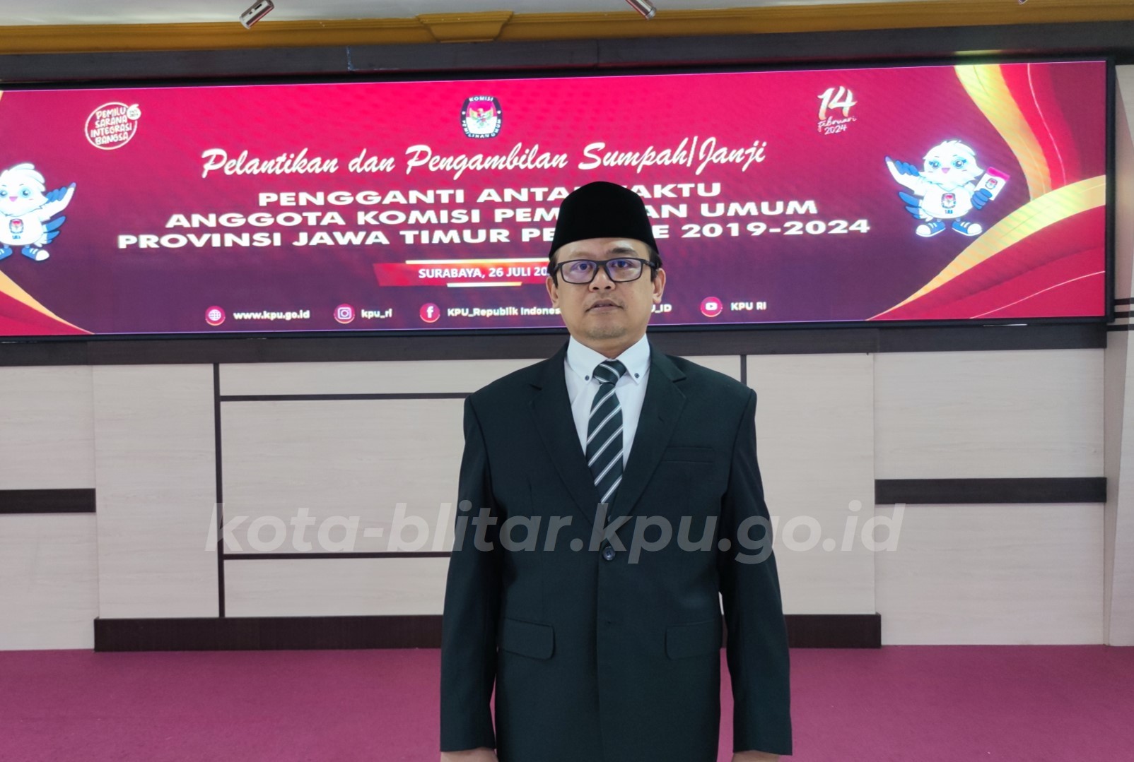 Surabaya, kota-blitar.kpu.go.id – Athoillah resmi dilantik dan diambil sumpah janjinya sebagai Pengganti Antarwaktu (PAW) Anggota Komisi Pemilihan Umum Provinsi Jawa Timur (KPU Jatim) Periode 2019-2024 pada Rabu (26/07).