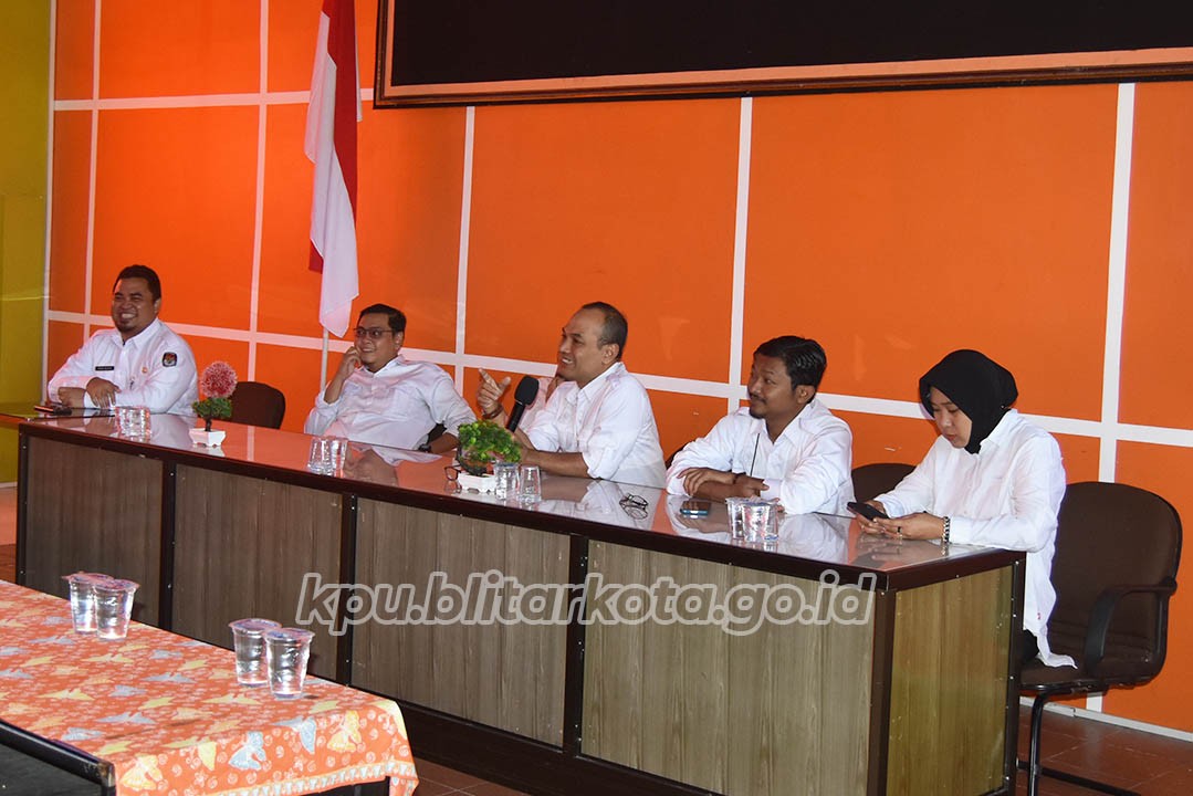 Di Aula KPU Kota Blitar, Sekretaris dan Kasubbag Hukum dan SDM KPU Kota Blitar melakukan sosialisasi SIMPEG kepada Kasubbag dan staf ASN serta PPNPN di lingkungan sekretariat KPU Kota Blitar, Senin (18/07). Selain sosialisasi, Kasubbag Hukum dan SDM Ardian Prabowo juga ingin memastikan kepada seluruh pegawai, apakah keseluruhannya sudah bisa login ke dalam aplikasi yang berbasis web ini.
